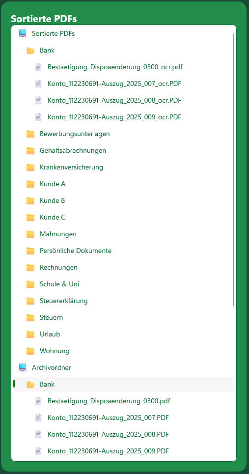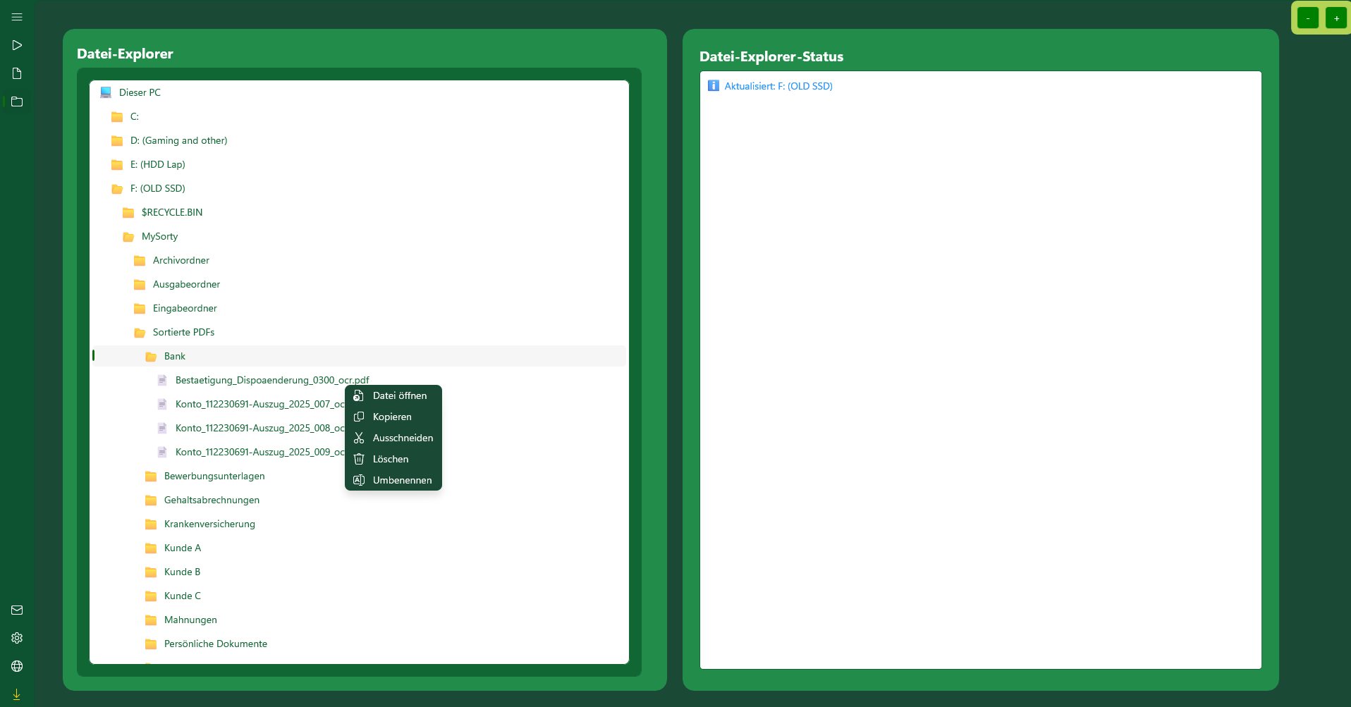 Mit diesen beiden Funktionen kannst du deine Dokumente direkt in MySorty ansehen und verwalten – ohne externe Programme oder den Windows-Explorer nutzen zu müssen.