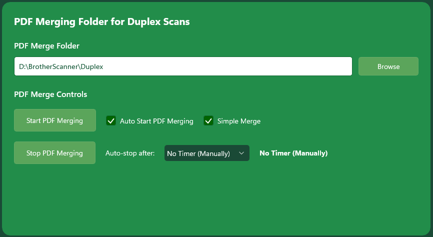 - Auto Start PDF Merging: Enables automatic merging whenever new files are detected in the Merge Folder.