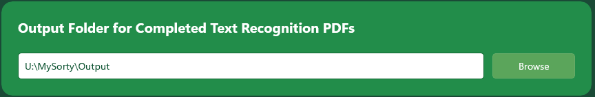 2. Output Folder: (Stores completed PDFs after text recognition)