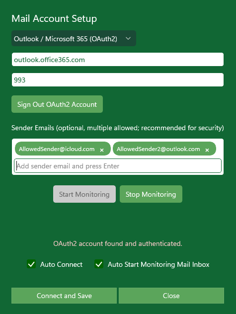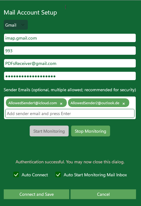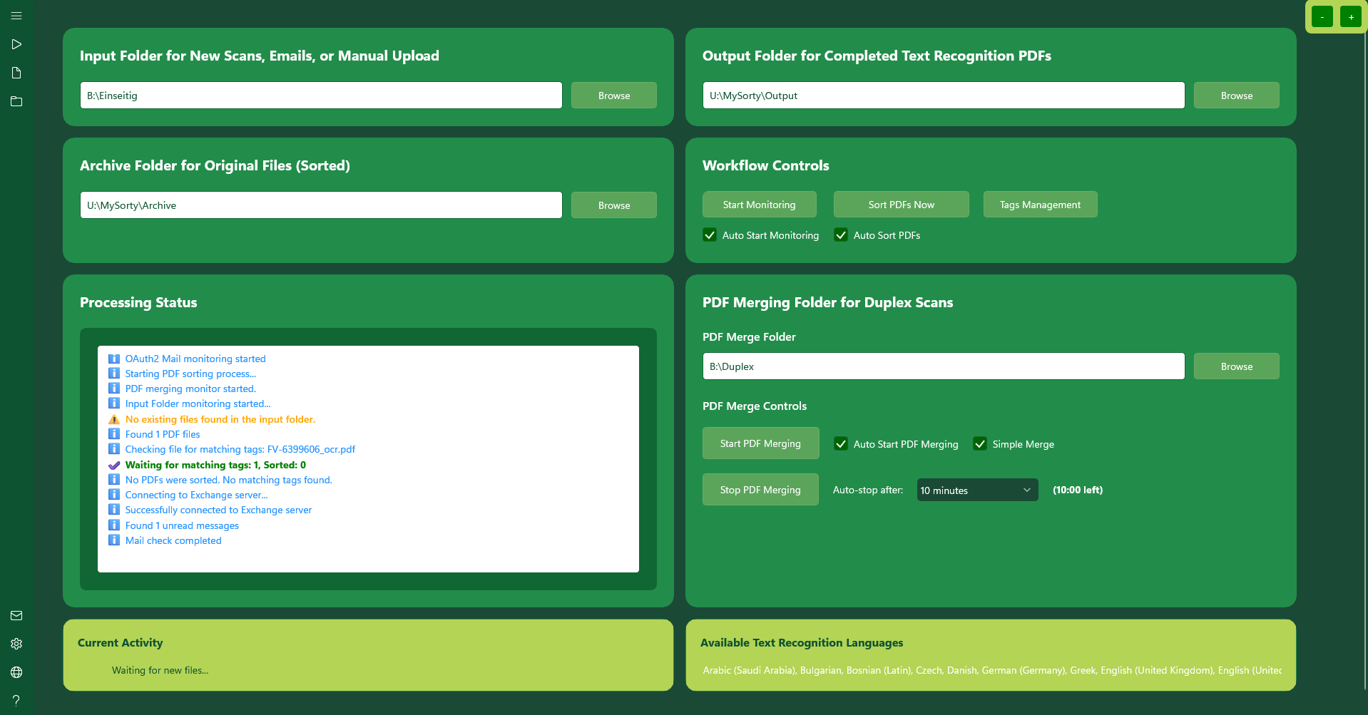 This allows MySorty to automatically extract PDF files from your mailbox and place them directly into your input folders, so processing can begin immediately.